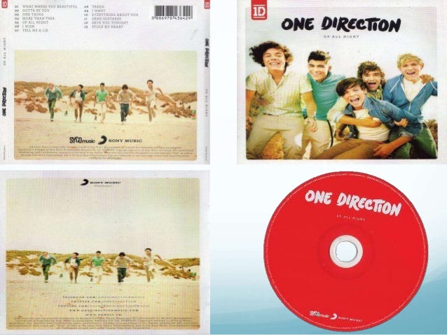The above digipak is for One Direction's album Up All Night. Their logo "1D" is featured on both the front cover and tracklisting showing that this is very important. They are shown in a happy yet boyish manner on the front cover as they are establishing themselves as a boy band. The white on red logo is featured on the CD aswell but as the whole CD. This helps to install this in peoples minds. Their image is shown on all covers and while they are not close-ups they all show distinctively that it is them. The track listing compared to the image is very small showing image is more important than the songs.